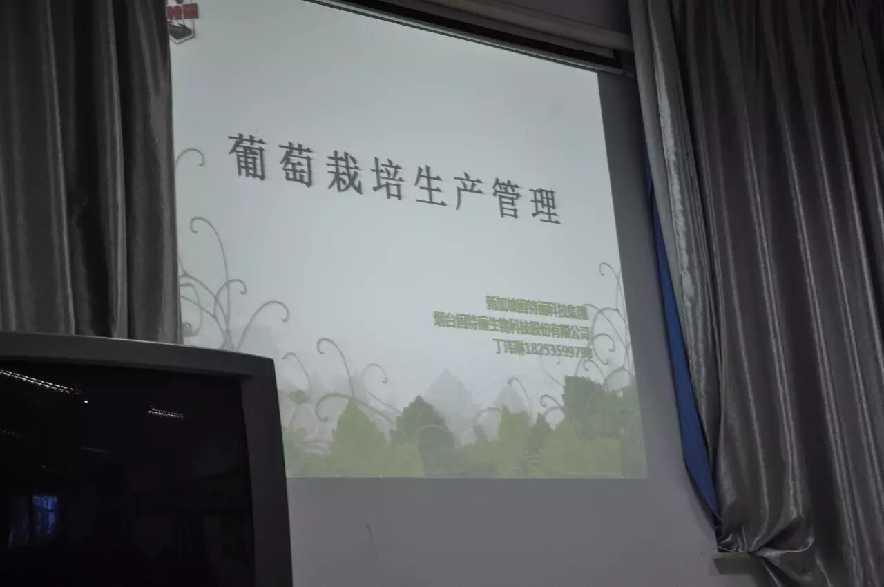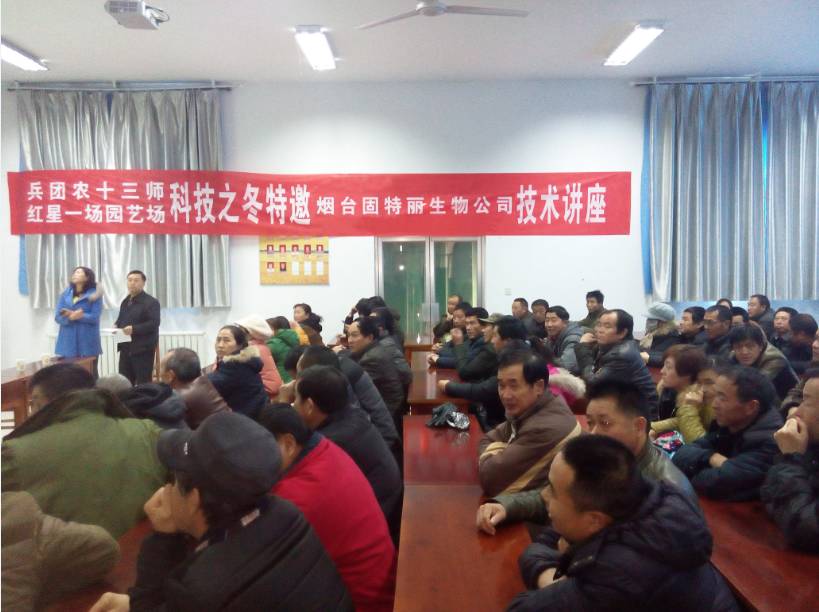 烟台固特生物生物科技股份有限公司积极响应兵团科技之冬培训,于 2016年1月13日和14日在兵团农十三师红星一场的会议室向兵团职工讲座《葡萄栽培管理》,针对新疆特殊的气候和土壤现状,分析如何为葡萄提供一个良好的生长环境和如何解决葡萄营养平衡的问题,提出了土壤的修复方案和营养管理方案,并讲解钙在葡萄生长中的重要作用和葡萄着色的问题。