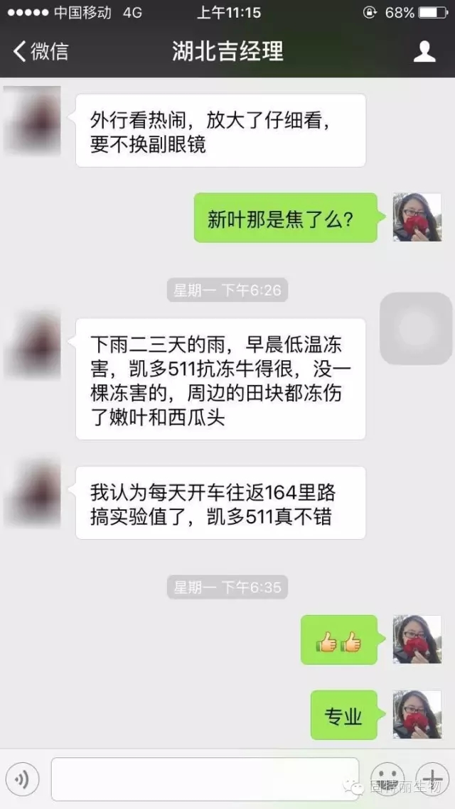 经过三四天的试验观察,客户总结:湖北连续两三天降雨,早晨低温冻害,凯多511抗冻效果非常好,喷施凯多511的西瓜苗儿没有一棵遭受冻害,周围没有喷施凯多511的西瓜苗均冻伤了嫩叶和西瓜头。